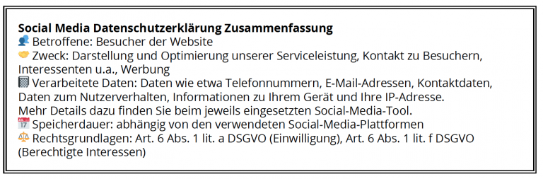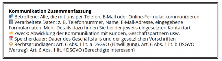 Kurz gesagt: Die Datenschutzerklärung gilt für alle Bereiche, in denen personenbezogene Daten im Unternehmen über die genannten Kanäle strukturiert verarbeitet werden. Sollten wir außerhalb dieser Kanäle mit Ihnen in Rechtsbeziehungen eintreten, werden wir Sie gegebenenfalls gesondert informieren.