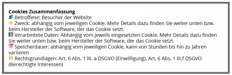 Seit 2009 gibt es die sogenannten „Cookie-Richtlinien“. Darin ist festgehalten, dass das Speichern von Cookies eine Einwilligung (Artikel 6 Abs. 1 lit. a DSGVO) von Ihnen verlangt. Innerhalb der EULänder gibt es allerdings noch sehr unterschiedliche Reaktionen auf diese Richtlinien. In Österreich erfolgte aber die Umsetzung dieser Richtlinie in § 96 Abs. 3 des Telekommunikationsgesetzes (TKG). In Deutschland wurden die Cookie-Richtlinien nicht als nationales Recht umgesetzt. Stattdessen erfolgte die Umsetzung dieser Richtlinie weitgehend in § 15 Abs.3 des Telemediengesetzes (TMG).