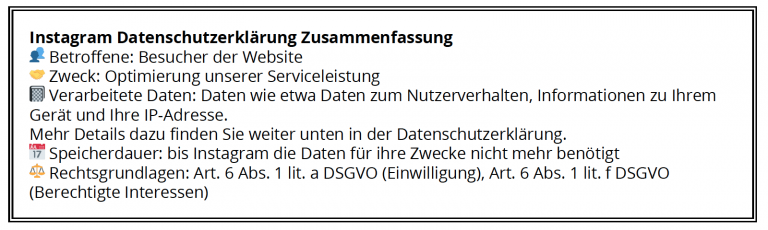 Instagram bzw. Facebook verarbeitet Daten u.a. auch in den USA. Wir weisen darauf hin, dass nach Meinung des Europäischen Gerichtshofs derzeit kein angemessenes Schutzniveau für den Datentransfer in die USA besteht. Dies kann mit verschiedenen Risiken für die Rechtmäßigkeit und Sicherheit der Datenverarbeitung einhergehen.